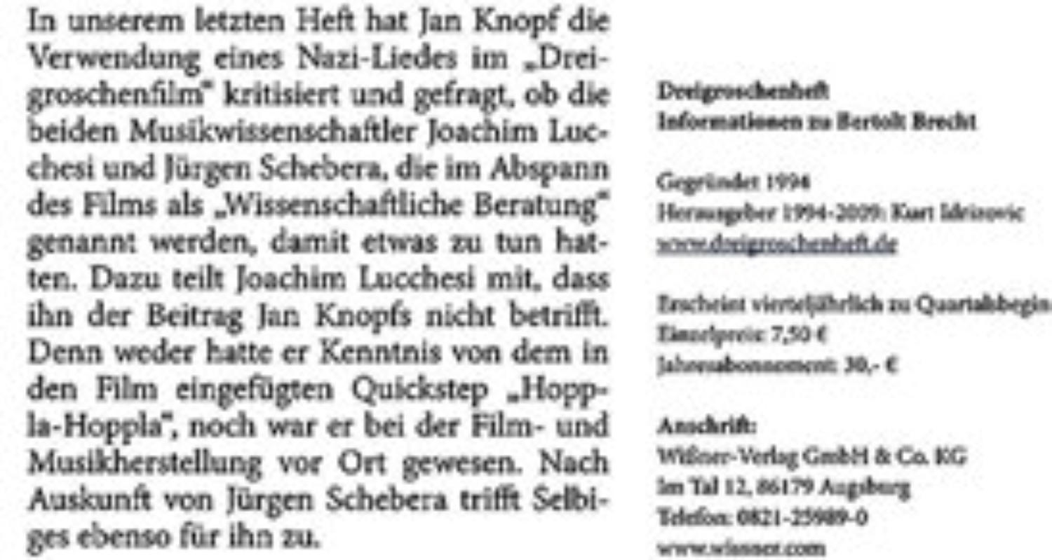 Betr.: „Mackie Messer – Brechts Dreigroschenfilm“ (2018): Fakes im Abspann und im